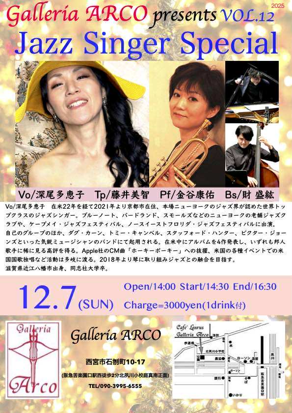 - 藤井美智(Tp)、金谷康佑(Pf)、財盛絋(Bs)、深尾多恵子Songbird TAeKO(Vo)